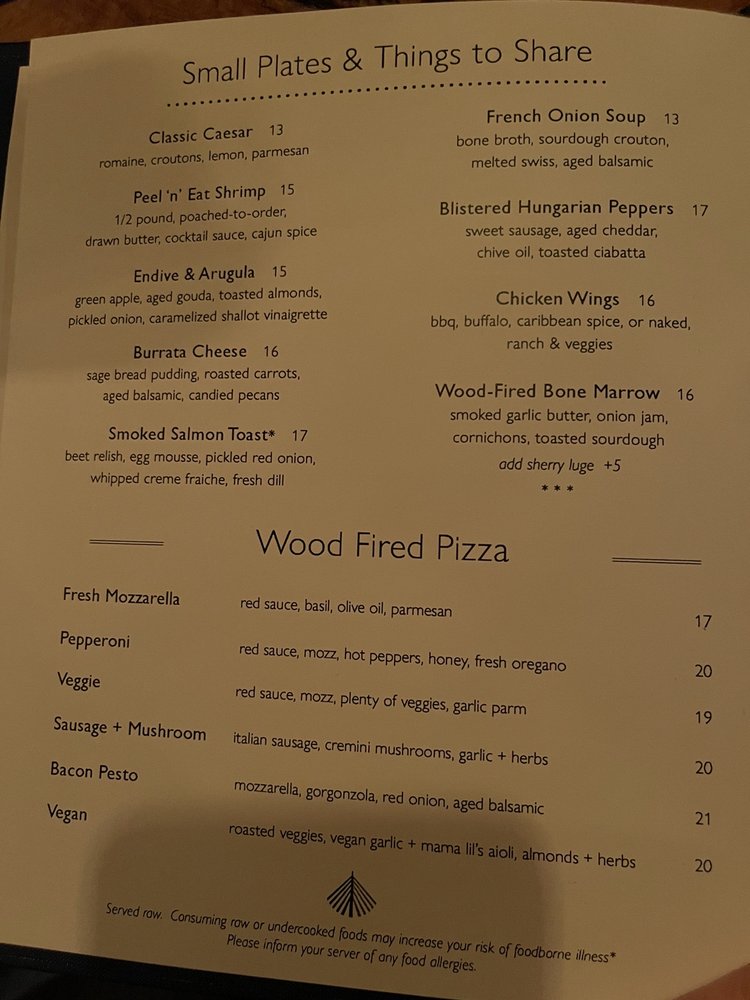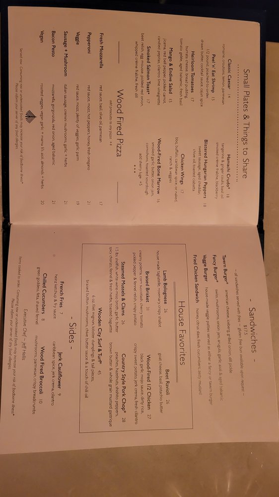 Wooden City in Tacoma is a trendy and intimate restaurant offering a tapas/small plates, pizza, and sandwich menu. The restaurant provides a variety of utilities such as reservations, takeout, delivery, and a full bar. Customers have raved about the wood-fired bone marrow appetizer, perfect pizza crust, and flavorful cocktails like the Prairie Line and Bramble. The ambiance is cozy and inviting, making it a great spot for a night out. Despite some crowded seating, the service has been top-notch with frequent check-ins from attentive staff. The menu features dishes like the burger, wings, spicy lamb rigatoni, and chicken sandwich that have received high praise. Be sure to make a reservation to avoid long waits and experience the delicious offerings at Wooden City.
